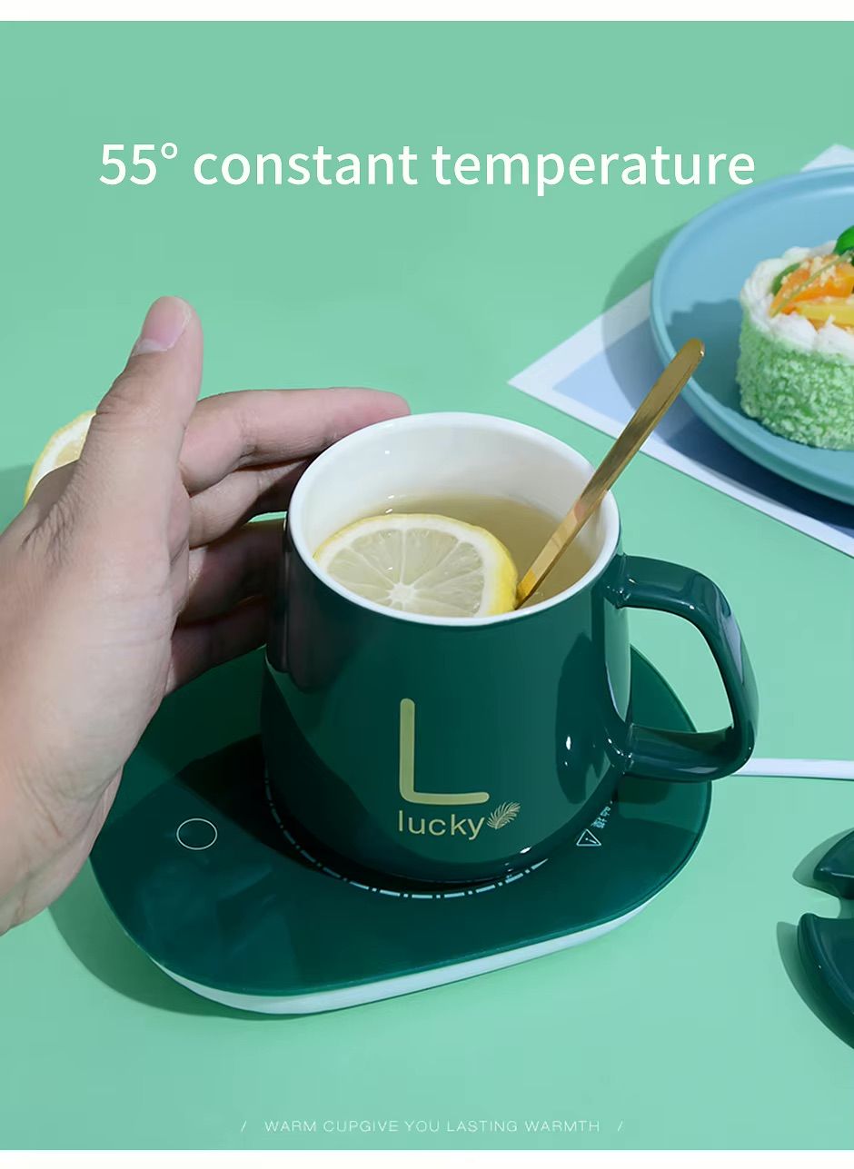 Подставка подогревающая чашка, термостатическая 10W USB 2+A, 16x12cm HZ-NBD03 зеленая