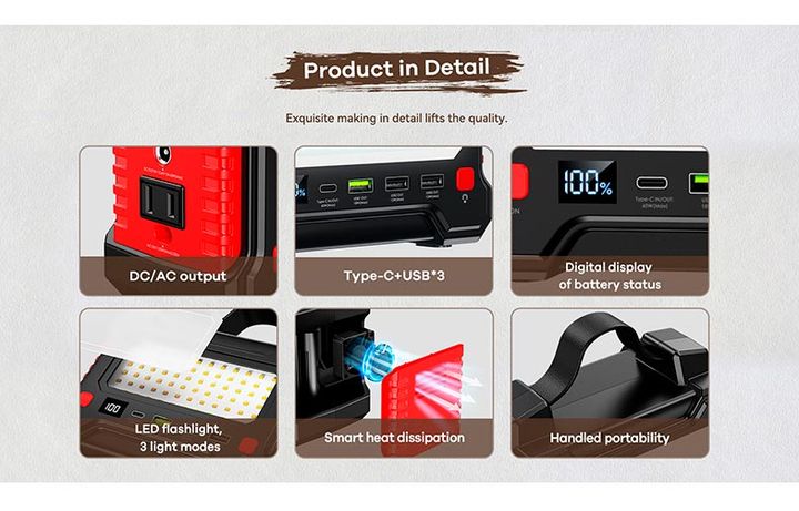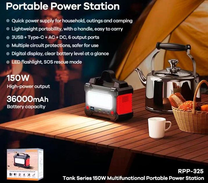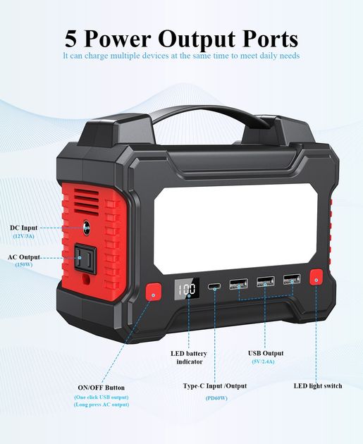 Этот продукт позволяет получить мощность, эквивалентную электроэнергии, которую вы используете дома. Он питает 220 В и может выдавать до 150 Вт мощности! Кроме того, это портативный источник питания подходит и для устройств, требующих высокой мощности, таких как вентиляторы и проекторы.