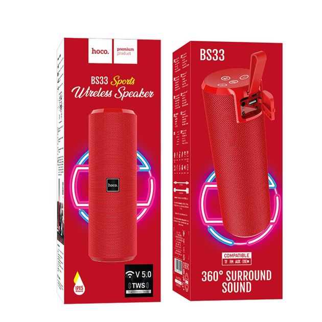 Портативная колонка HOCO BS33 Voice sports wireless speaker |AUX, TF CARD, FM, USB| Red