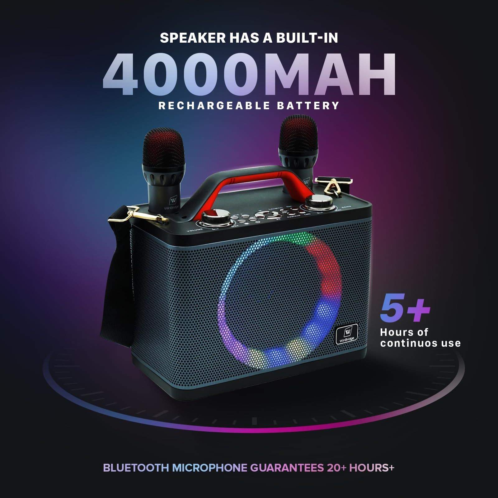 Время зарядки: колонка – 3-4 часа, микрофоны – 2-3 часа