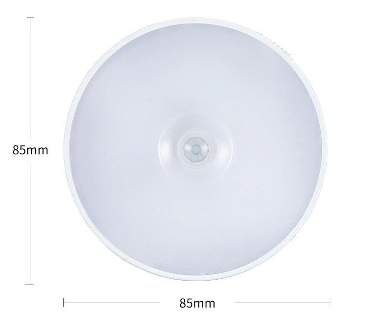 Portable LED Light 85mm Round, White | Micro USB, 8LEDs, Warm Light, Magnetic Mount | 2 Modes | for Kitchen, Closet, Bedroom, Hallway