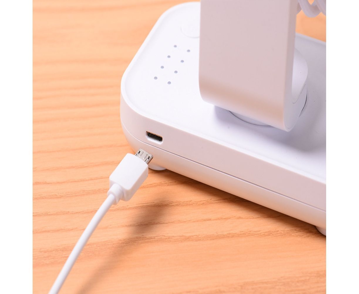 Настольный вентилятор GXQC D606 белый - компактный и мощный портативный вентилятор с безщеточным двигателем. Оснащенный 18650 литиевой батареей емкостью - 4000 mAh, он обеспечит вам непрерывный поток свежего воздуха до 8 часов. За счет возможности питания от любого USB порта 5V его можно подключить к сетевому адаптеру, повербанку или ноутбуку с помощью кабеля который идет в комплекте.