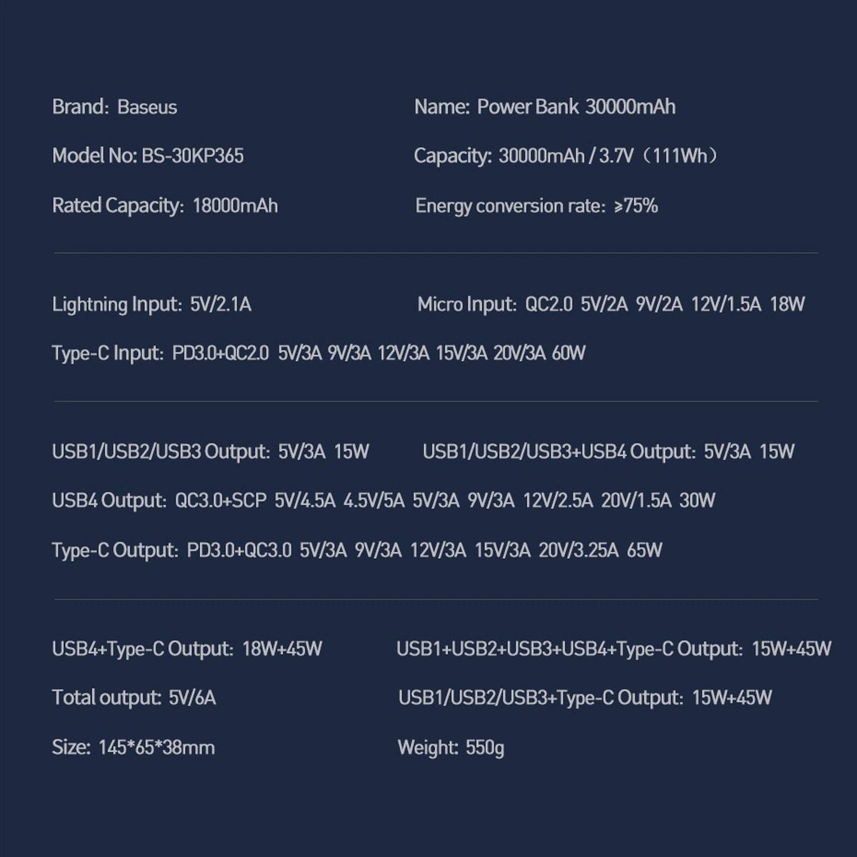 Повербанк Baseus Amblight QC Overseas Edition PPLG000102 30000 mAh 65W, White