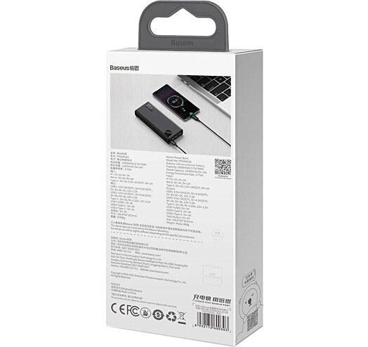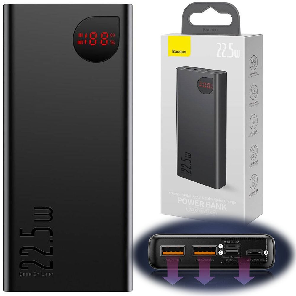 Baseus PPAD000101 Metal Повербанк 20000mAh 2USB-A 22.5W QC3.0, Type-C PD 20W / In: Lightning, micro-USB, Type-C 18W, LED дисплей, чёрный