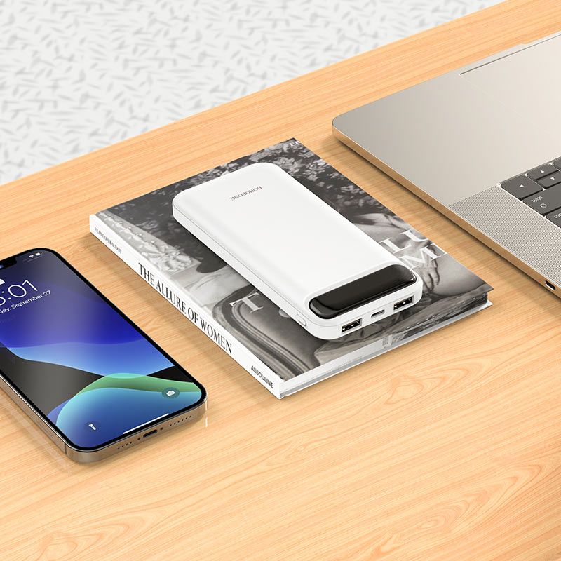 Повербанк Borofone BJ14 Freeway (10000 mAh / 2USB 5Vx2A / In: Type-C, micro-USB 5Vx2A ) LED, White
