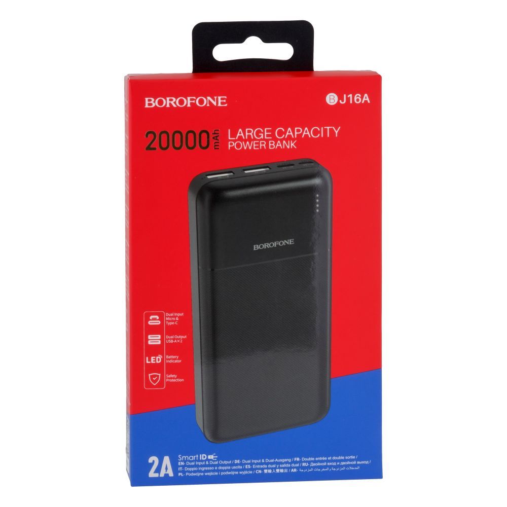 Повербанк Borofone BJ16A 20000 mAh 2USB 5V,2A / In: Type-C, micro-USB 5V,2A / LED indicator black