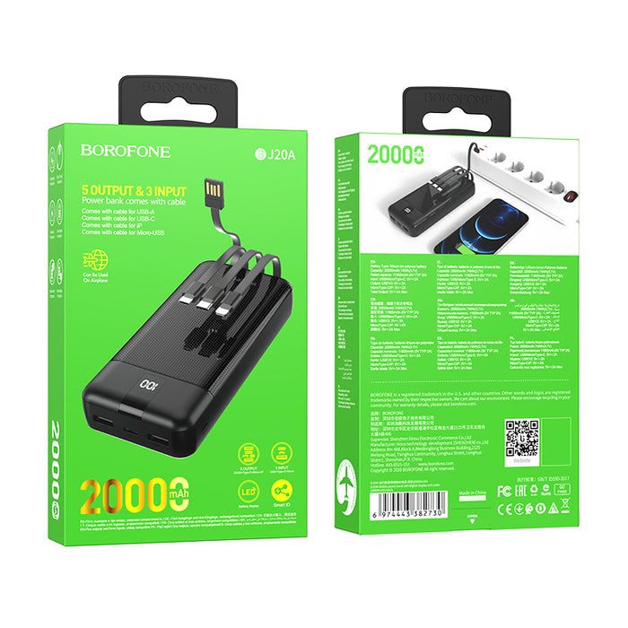 Повербанк Borofone BJ20A (20000 mAh 2USB, micro, Type-C, Lightning 5Vx2A / In: Type-C, micro-USB, USB, 5Vx2A ) LED, black