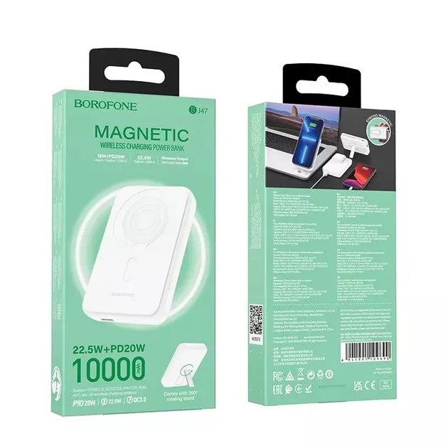 Внешний аккумулятор BOROFONE BJ47 Quick – это надежное и удобное решение для зарядки ваших устройств в любое время. Его высокая емкость в 10000 мАч позволяет несколько раз зарядить смартфон, наушники, смарт часы или другие гаджеты, что делает этот повербанк идеальным для путешествий и деловых поездок. Благодаря поддержке технологии MagSafe, аккумулятор легко присоединяется к последним моделям iPhone, обеспечивая стабильную беспроводную зарядку на мощности до 15 Вт.