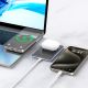 - Поддержка магнитной беспроводной зарядки (в том числе на 7.5W для устройств с поддержкой MagSafe) позволяет заряжать устройства без использования кабелей, просто прикрепив их к аккумулятору.