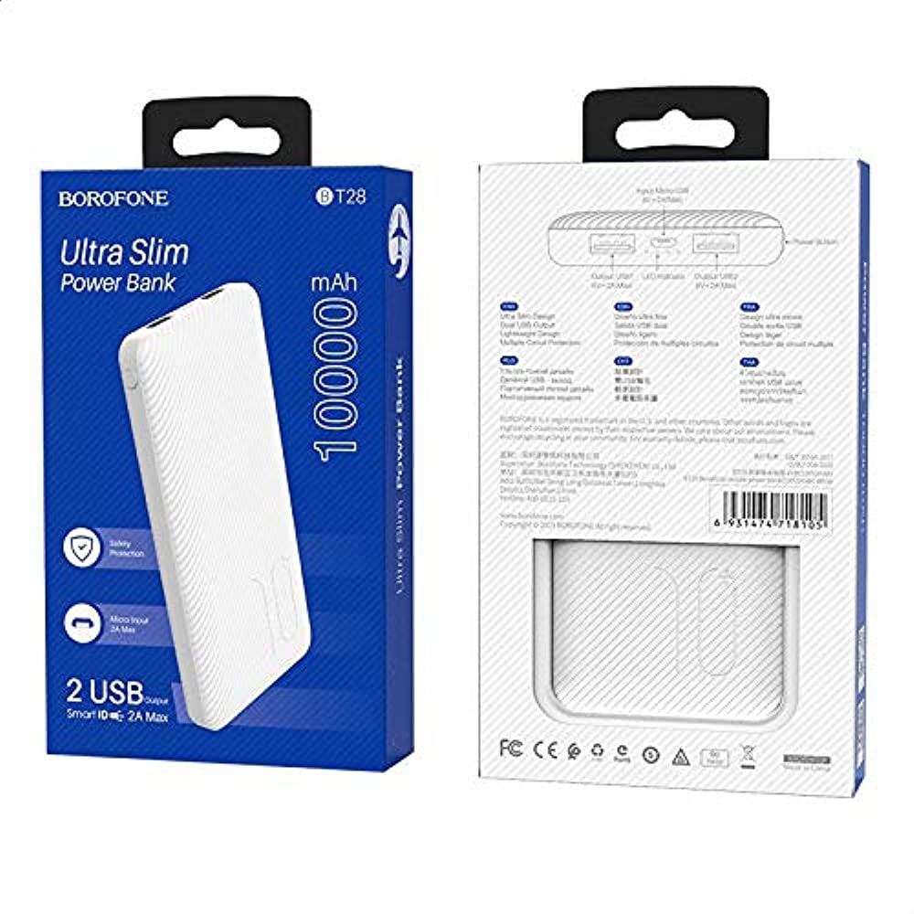Borofone BT28 — это ультратонкий и мощный портативный аккумулятор с емкостью 10 000 мАч, идеально подходящий для зарядки мобильных устройств в дороге. С его помощью можно одновременно заряжать два устройства благодаря двум USB-выходам, а микро-USB вход обеспечивает быструю подзарядку самого пауэрбанка.