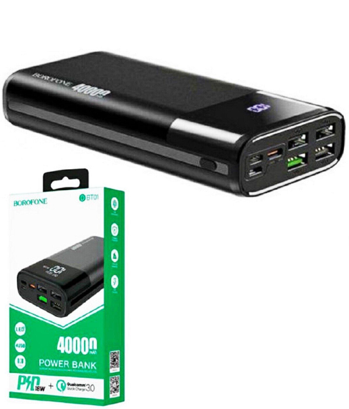 Повербанк Borofone DBT01 (40000mAh / Out: 4xUSB-A 18W QC3.0, Type-C 18W PD / In: Lightning, micro-USB, Type-C PD18W 5V/3A ) с LED Дисплеем, Чёрный