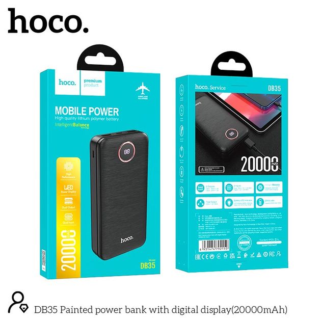 Повербанк HOCO DB35 digital display 20000mAh |2USB/Type-C, 2.1A| black