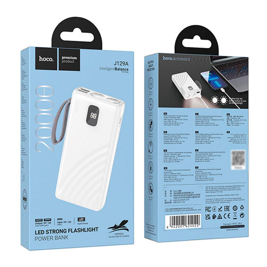 Hoco J129A – это внешний аккумулятор с емкостью 20000 mAh, который обеспечит долгую автономность ваших устройств. Компактный и стильный дизайн, прочный корпус и многоуровневая система защиты делают его отличным выбором для путешествий, работы и активного образа жизни.