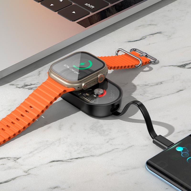 HOCO Whale J145 – это миниатюрный внешний аккумулятор, специально разработанный для смарт-часов Apple Watch. Благодаря встроенной беспроводной зарядке мощностью 2.5W, он поддерживает все модели iWatch (серии 1-10, SE/SE2, Ultra/Ultra2). Легкий и компактный дизайн делает его идеальным аксессуаром для путешествий, командировок и повседневного использования.