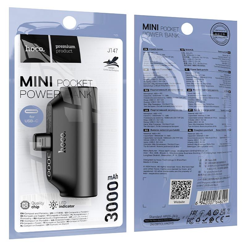 Повербанк HOCO J147 USB-C Prospero pocket 3000mAh black