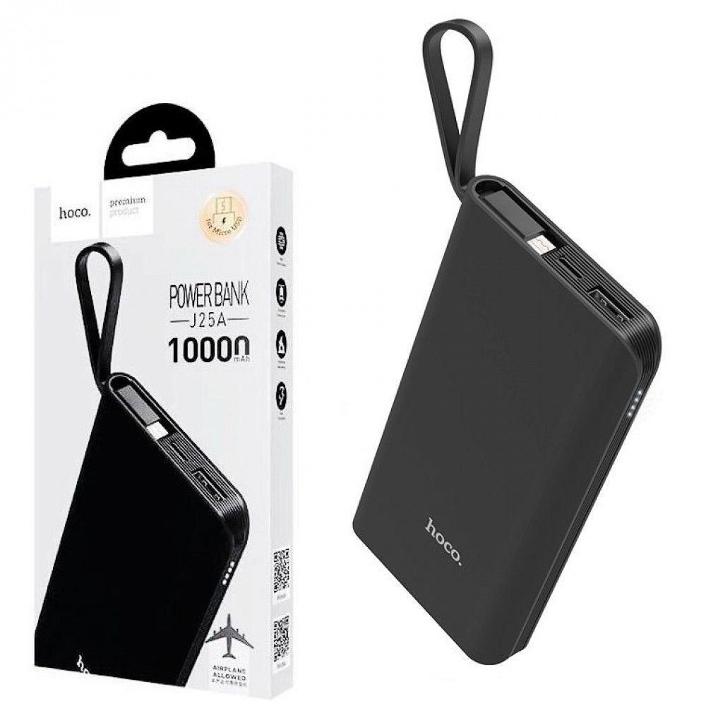Повербанк Hoco J25A With Cable Micro 10000 mAh Чёрный