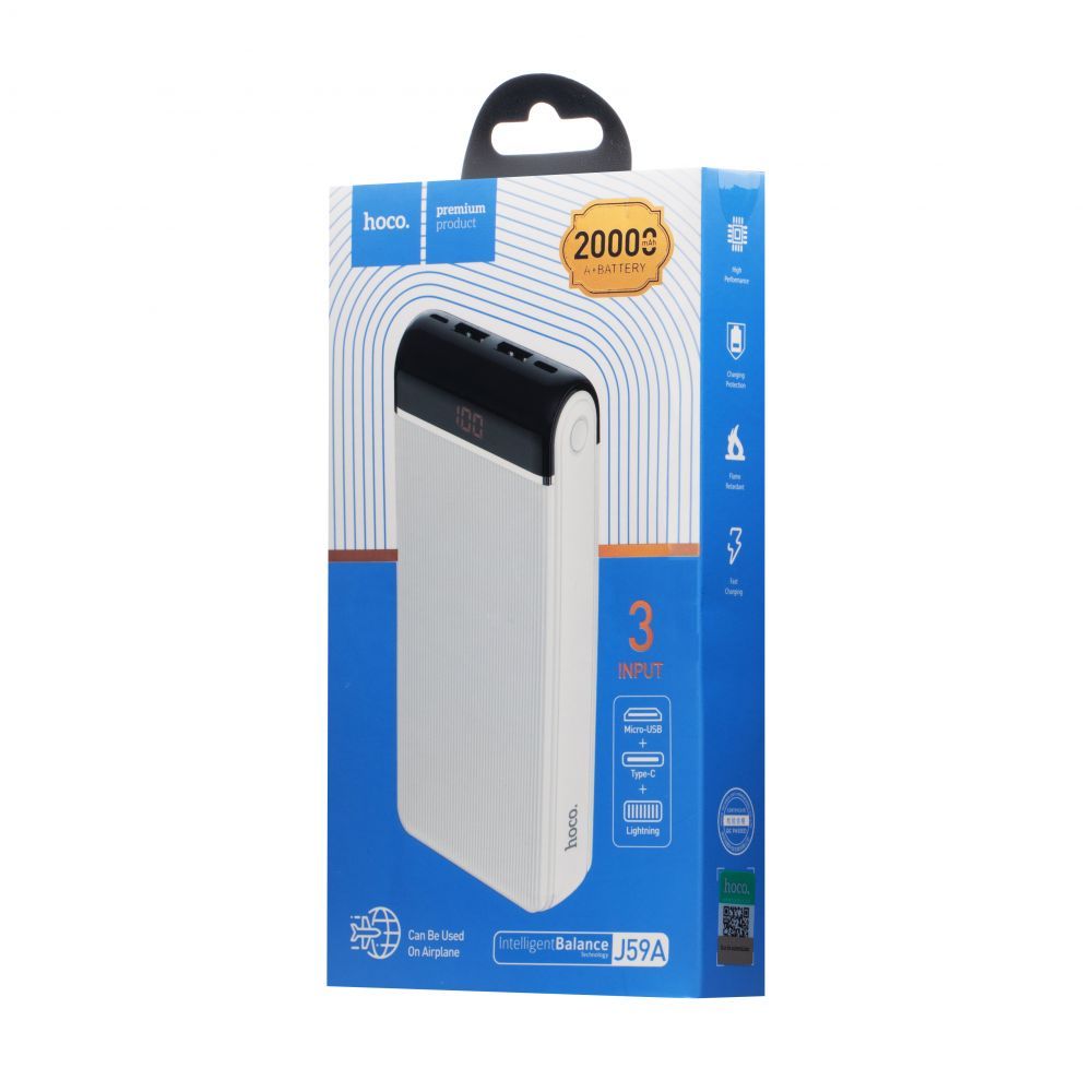 Повербанк Hoco J59A Famous (20000 mAh, 2USB 5V,2A / In: Type-C, Lightning, micro) LED indicator, White