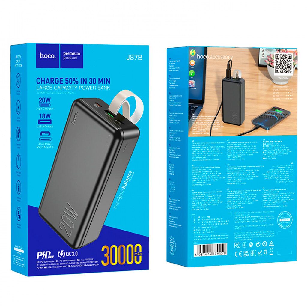 Портативный аккумулятор Hoco J87B Tacker PD20W+QC3.0, 30000 mAh, черный
