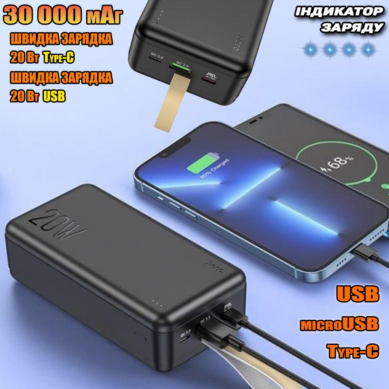 Повербанк Hoco J87B Tacker PD20W+QC3.0 30000 mAh Черный в Киеве и Украине с быстрой доставкой Новой Почтой. Осмотр и оплата при получении или по предоплате, по Вашему желанию. Детали узнайте у нашего менеджера, обратившись по контактам продавца.