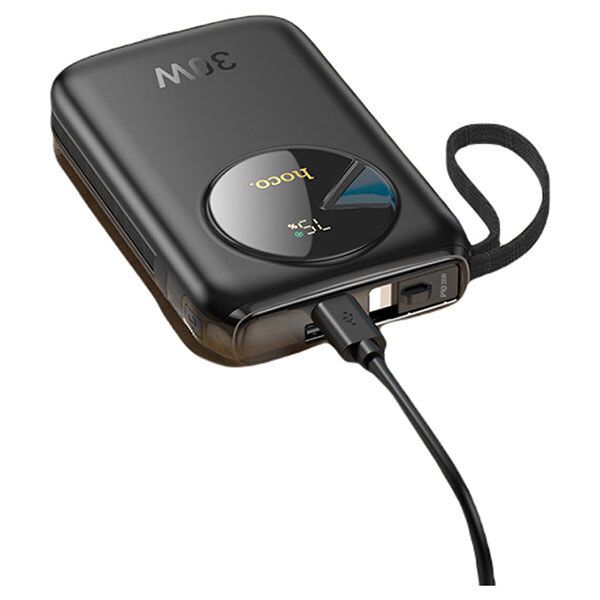 Портативное зарядное устройство Power Bank Hoco Q19 Lucky 30W, c цифровым дисплеем, встроенным кабелем и ремешком, 10000 mAh, Черный;