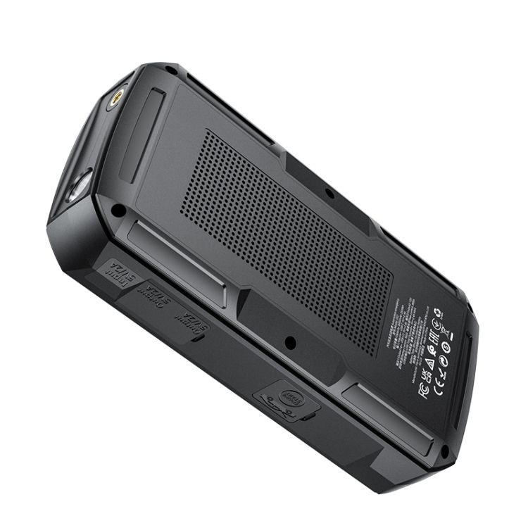 Универсальная мобильная батарея Hoco QS2 – это мультифункциональное устройство, которое должно быть в арсенале каждого владельца автомобиля. Оно лаконично объединяет в себе функции классического повербанка, фонаря, джамп стартера и компрессора. Модель привлекает внимание оригинальным дизайном с яркими, контрастными деталями, выделяется простотой в эксплуатации и исключительной надежностью. Благодаря компактным размерам, она не займет много места в рюкзаке или в бардачке автомобиля. Детали ее ударостойкого корпуса качественно собраны, изготовлены из прочной комбинации огнестойкого поликарбоната и ABS пластика. На его верхней панели находятся кнопки управления и информативный LED дисплей, в одном из торцов – выход компрессора и фонарь, а на боковой грани – 2 разъема USB, разъем Type-C и интерфейс EC5 для подключения силового кабеля джамп стартера. Емкость его энергоэффективной литий-полимерной батареи составляет 8000mAh (29.6Wh). Уровень ее заряда отображается на дисплее, а быстрый процесс ее зарядки обеспечивается через разъем Type-C с силой тока 2.4A при напряжении 5V. Разъемы USB предназначены для зарядки портативных гаджетов. Сила тока на выходе каждого из них может достигать 2.4A при напряжении 5V. Общая максимальная мощность на их выходе составляет 12W (5V/2.4A). Компрессор обеспечивает подачу воздуха с давлением 0-10.3 бар (0-150PSI), имеет 4 предустановленных режима: автомобильная шина, мотоциклетная шина, велосипедная шина, баскетбольный мяч. На дисплее отображается выбранный режим его работы и 4 значения давления (PSI, BAR, KPA, Kg/cm²). Фонарь может работать с периодическим миганием, в обычном режиме и режиме SOS. Максимальная сила пускового тока джамп стартера составляет 800A, а напряжение равно 12V. Он поможет запустить автомобиль с севшим аккумулятором даже в морозную погоду, совместим с бензиновыми двигателями объемом до 4.0л и дизельными двигателями объемом до 2.0л. Устройство комплектуется силовым кабелем с зажимами типа "крокодил", трубкой с насадкой для компрессора и 4 переходниками для него, инструкцией и кабелем Type-C для зарядки.