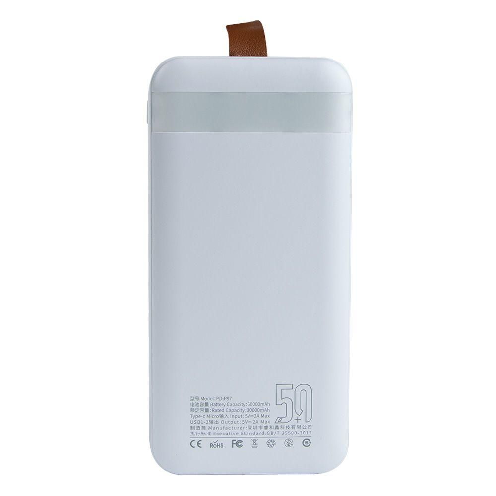 Повербанк Remax Proda PD-P97 Leading series (50000 mAh / Out: 2USB 5V/2A / In: Type-C, micro-USB 5V/2A ) с LED Дисплеем и фонариком, Белый