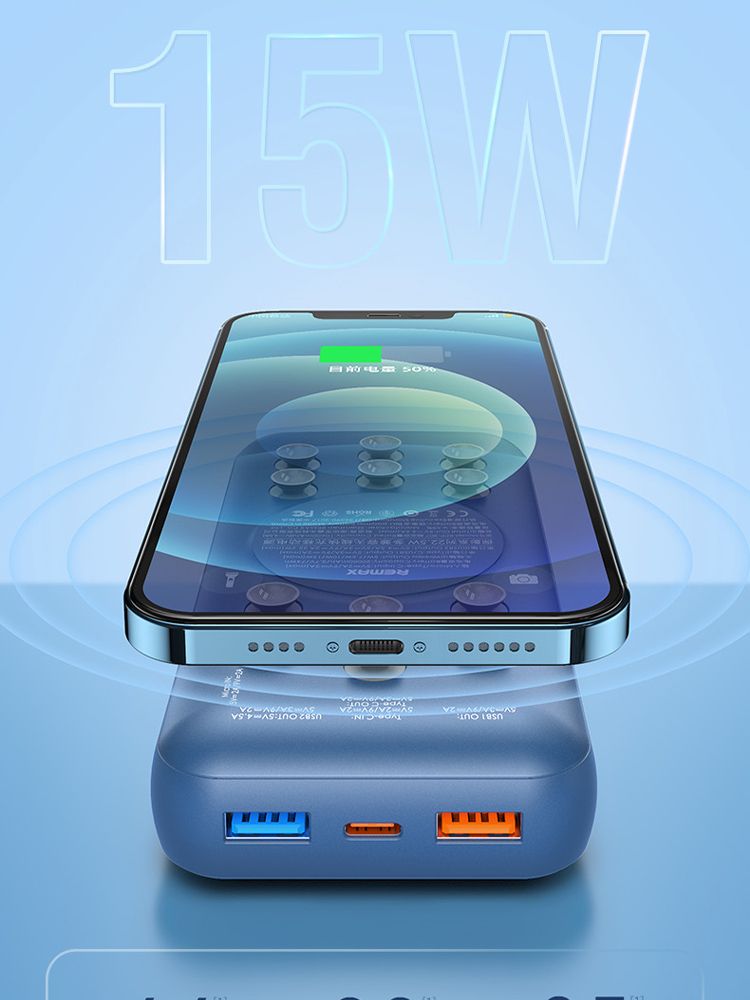 Power Bank Remax RPP-207 Tanyl 22.5W PD+QC Wireless Fast Charging 20000 mAh Синий в Киеве и Украине с быстрой доставкой Новой Почтой. Осмотр и оплата при получении или по предоплате, по Вашему желанию. Детали узнайте у нашего менеджера, обратившись по контактам продавца.