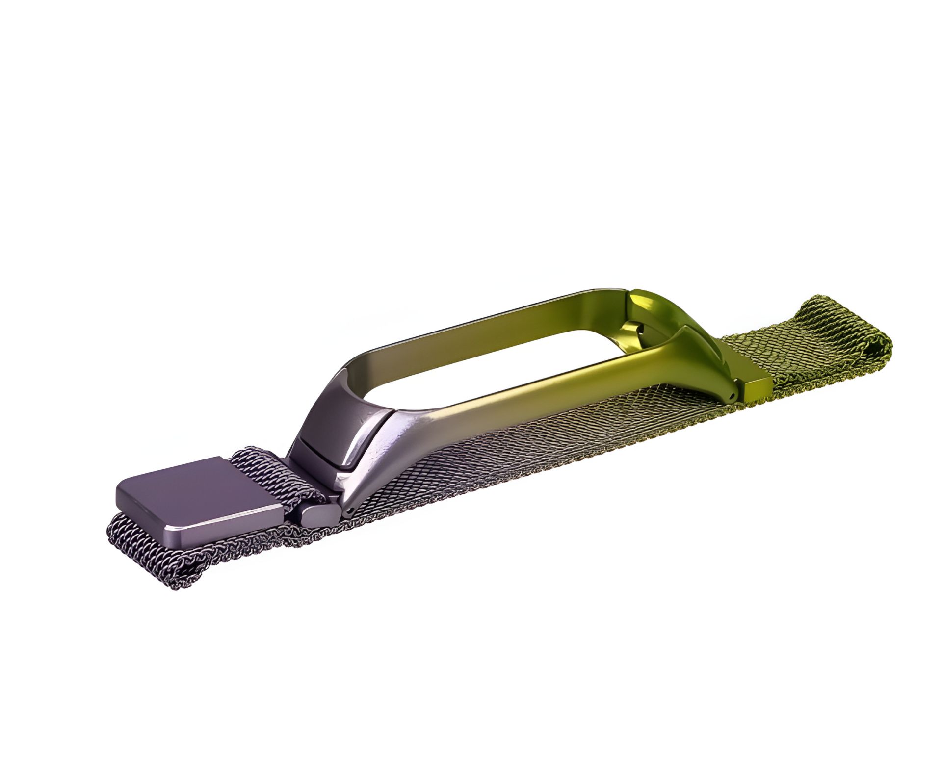 Металлический ремешок в стиле миланской петли, предназначенный для фитнес-браслетов Xiaomi Mi Band 3 и Mi Band 4, выполнен в зелёно-сиреневом цвете. Его изысканный дизайн и высококачественные материалы обеспечивают комфортное ношение и стильный внешний вид.