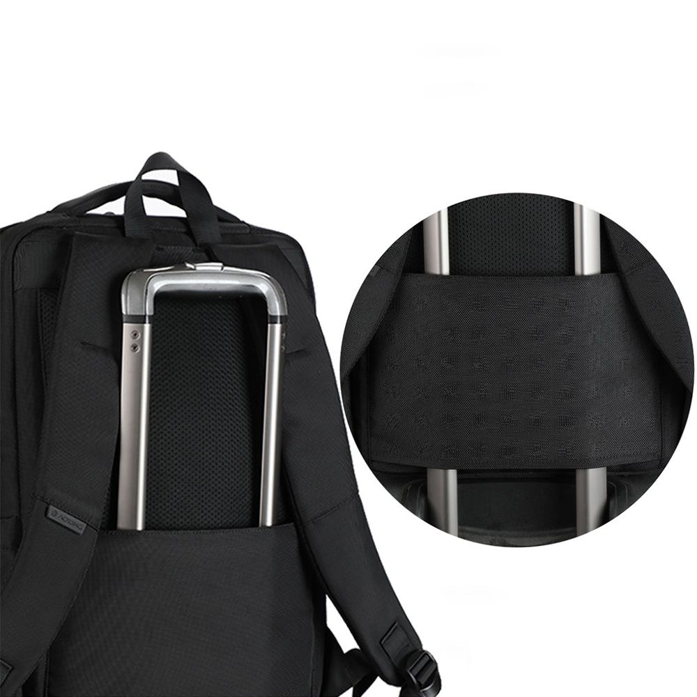 - Эластичный боковой карман для бутылки или зонта, съёмный держатель для ключей и возможность крепления на ручку чемодана делают рюкзак особенно удобным для путешествий и деловых поездок.