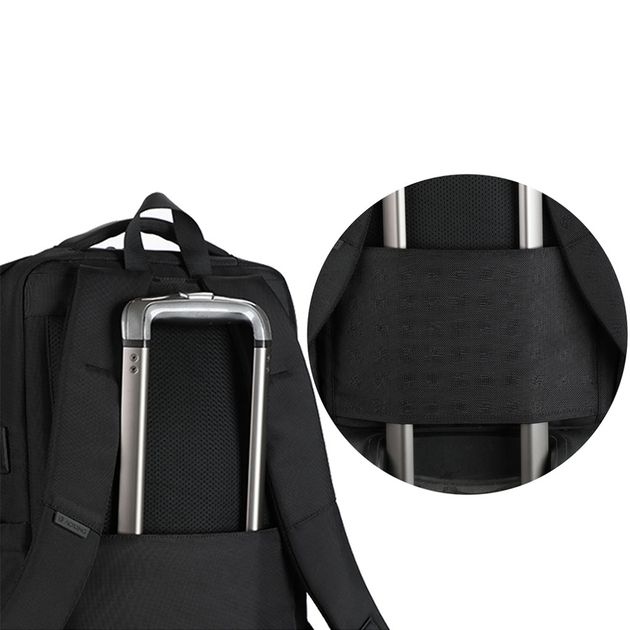 - Эластичный боковой карман для бутылки или зонта, съёмный держатель для ключей и возможность крепления на ручку чемодана делают рюкзак особенно удобным для путешествий и деловых поездок.