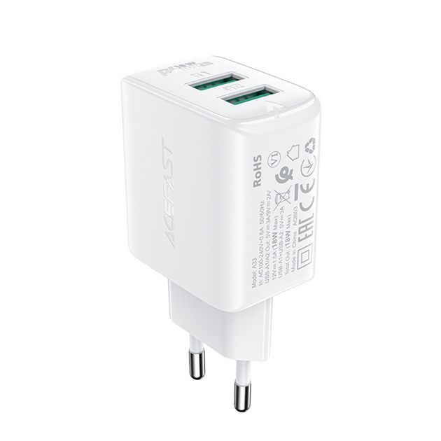 Белое зарядное устройство Acefast A33 2 USB QC