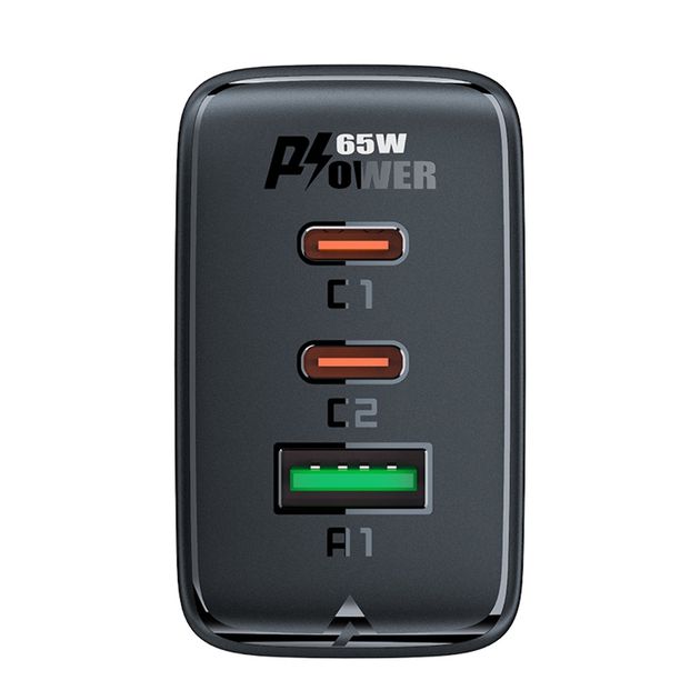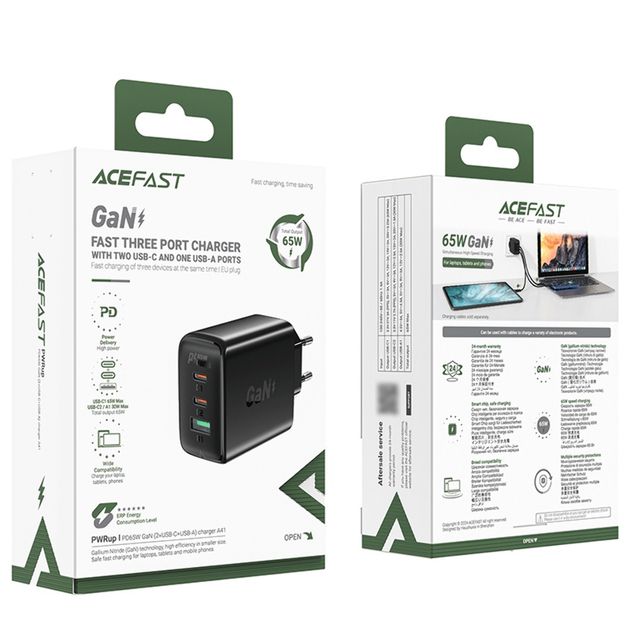 Черное зарядное устройство Acefast A41 USB/ 2 Type-C QC PD PD65W GaN
