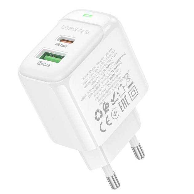 Зарядное Устройство Borofone BAS44A 1USB-C/1USB PD/QC 20W Белое