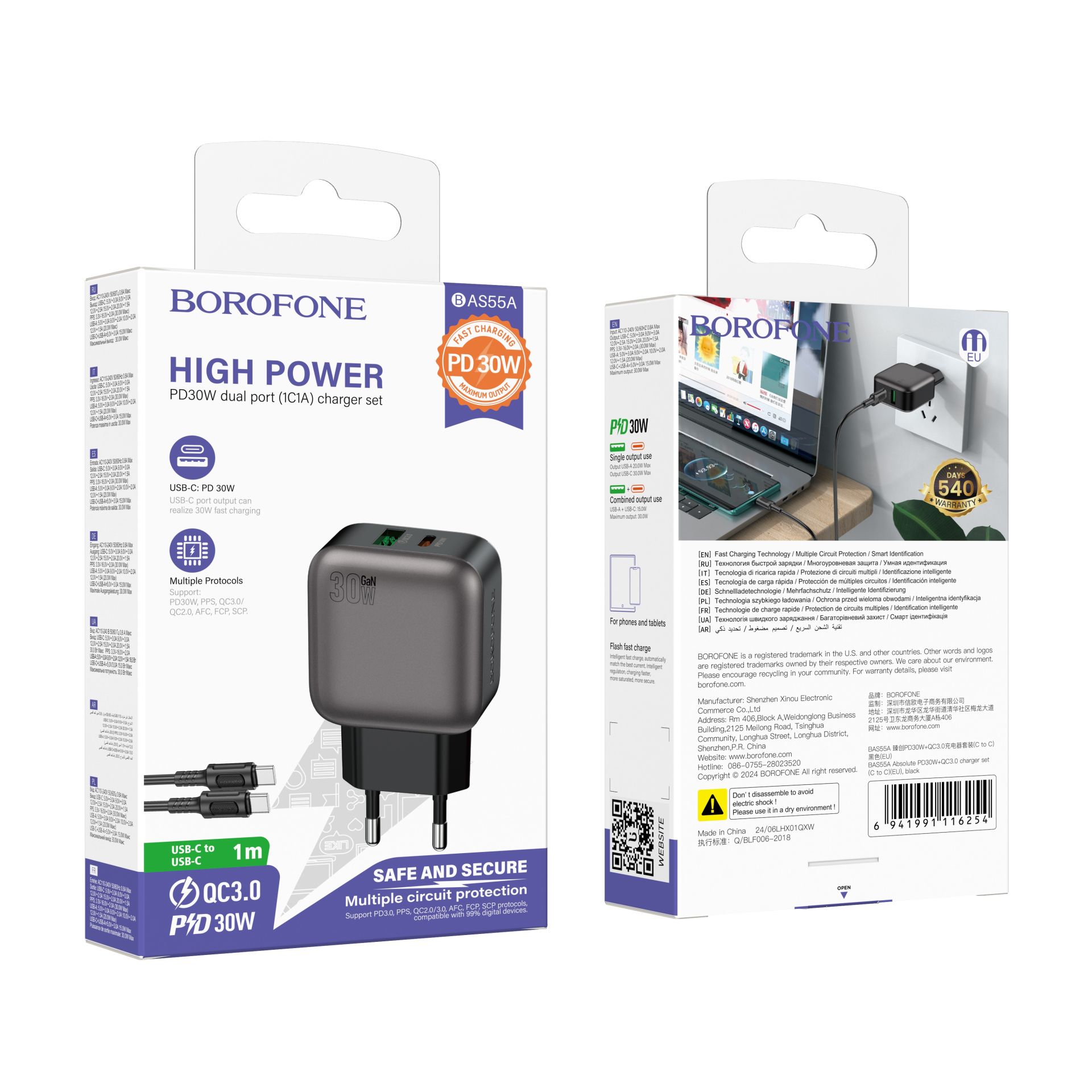 BOROFONE BAS55A — это мощное и компактное зарядное устройство с поддержкой быстрой зарядки PD30W, QC3.0, PPS и других популярных протоколов. Оно оснащено двумя портами (USB-A + Type-C), позволяя одновременно заряжать два устройства. Совместимо с большинством современных гаджетов, включая смартфоны, планшеты, повербанки и аудиоустройства. Максимальная мощность 30 Вт обеспечивает быструю и безопасную зарядку ваших устройств, а интеллектуальная система управления адаптирует подачу энергии для защиты аккумулятора.