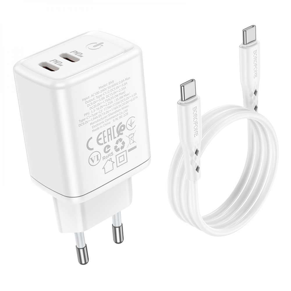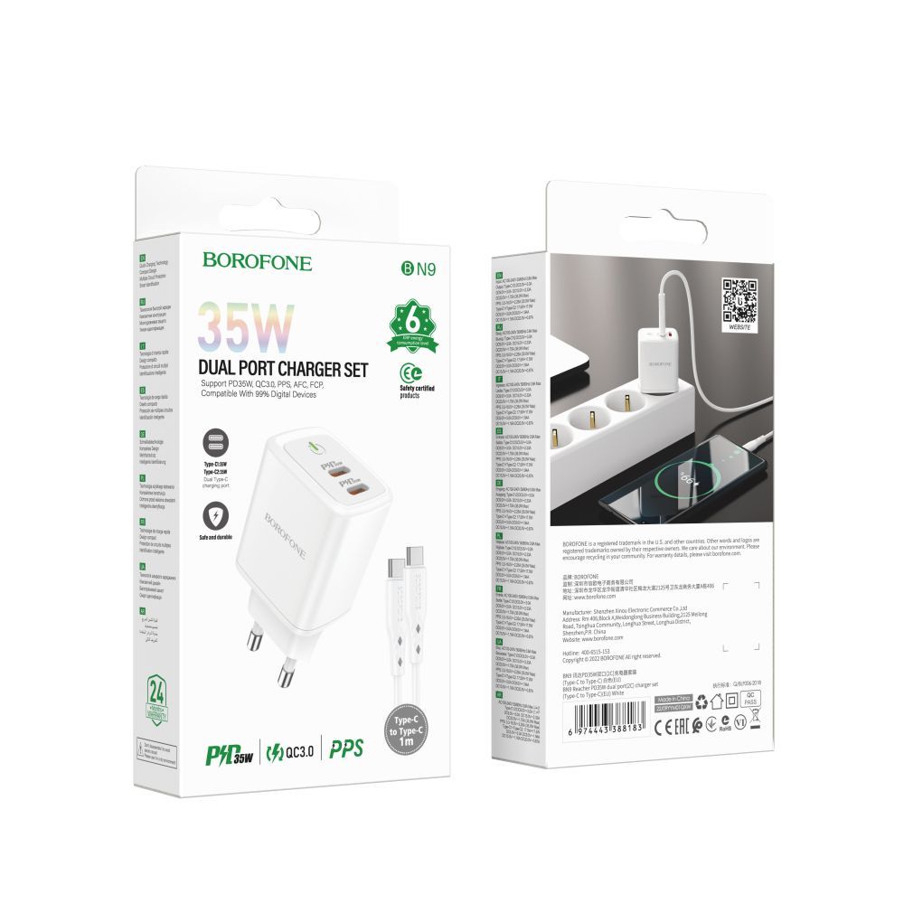 Зарядка Borofone BN9 Reacher PD/QC (2 USB-C), адаптер на 35W Type-C to Type-C, белый