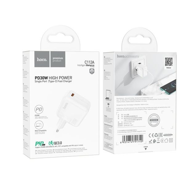 Зарядка PD30W Hoco Advantage C112A, Сетевой блок Белый