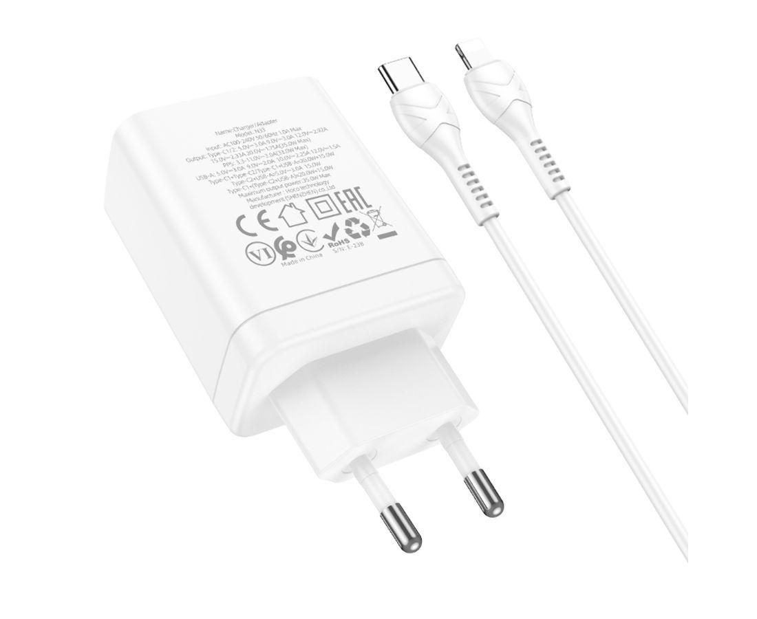 Зарядное устройство Hoco N33 белое 35W PD Type-C + Type-C to Lightning кабель