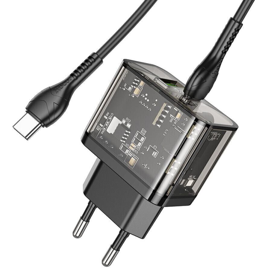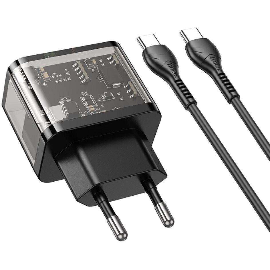 Сетевое Зарядное Устройство Hoco N34 Dazzling PD20W+QC3.0 Type-C to Type-C Прозрачный черный
