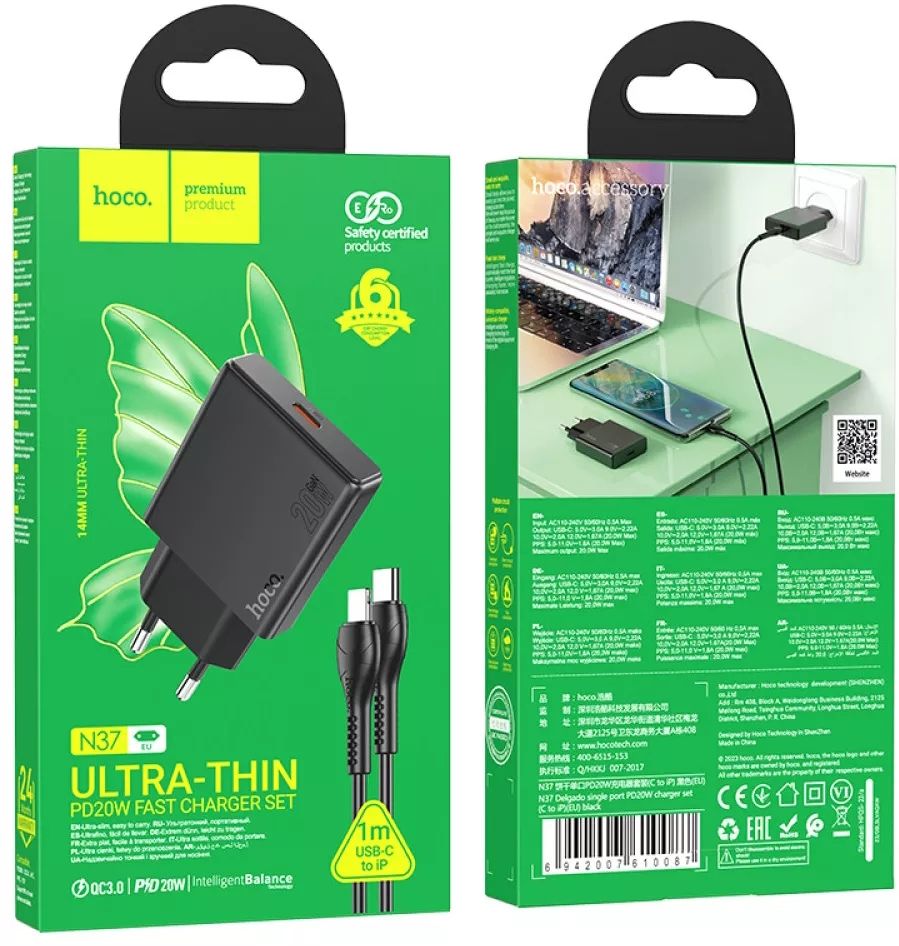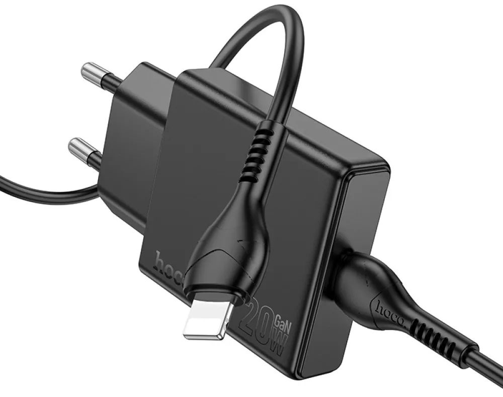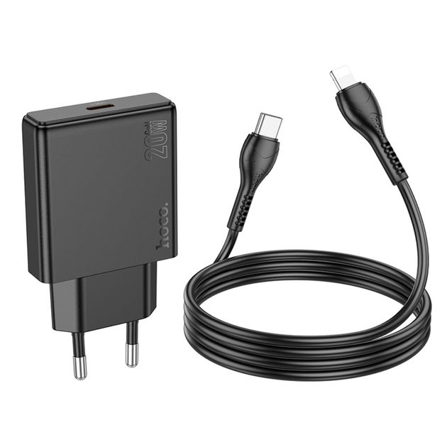 Сетевое зарядное устройство Hoco N37 Type-C PD 20W + кабель Type-C to Lightning черное