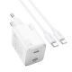 Сетевое зарядное устройство Hoco N42 2 Type-C PD 45W white + кабель Type-C to Type-C — это мощное и компактное зарядное устройство, которое поддерживает быструю зарядку различных устройств с интерфейсом USB Type-C, включая ноутбуки, смартфоны, планшеты и другие гаджеты.