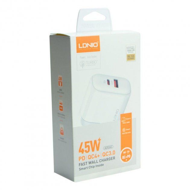 Сетевое Зарядное Устройство LDNIO A2526C PD/QC 45W Белый в Киеве и Украине с быстрой доставкой Новой Почтой. Осмотр и оплата при получении или по предоплате, по Вашему желанию. Детали узнайте у нашего менеджера, обратившись по контактам продавца.