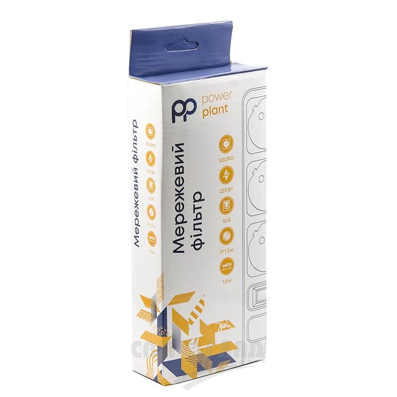 Сетевой кабель PowerPlant 1.8 м, 3x1.5мм2, макс. 10А, 3 розетки, евростандарт (JY-1054/1.8), коробка