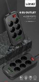 Сетевой Удлинитель LDNIO SE6403 |2500W, 2м EU Plug, 4 USB, 6 Розеток. 3.4A| чёрный