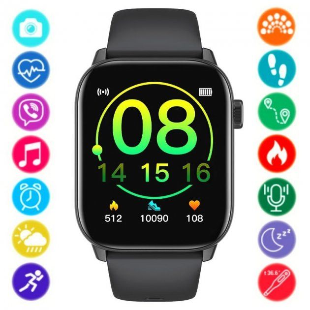 Большой выбор различных циферблатов; другие функции: будильник, секундомер, напоминание о сообщении (звонок/SMS/WeChat/я/WhatsApp/Facebook/Line/Twitter) и т.д.