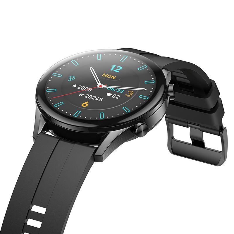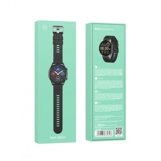 Smart Watch Hoco Y7 – это многофункциональные, спортивные часы, созданные с использованием высококачественных материалов и современных технологий. Модель отличается эргономичным дизайном и универсальностью, станет отличным выбором для повседневного использования, поможет повысить эффективность во время тренировок и упростит управление смартфоном. Круглый корпус устройства изготовлен из металла, имеет защиту, соответствующую стандарту IP68, что означает, что часы полностью защищены от пыли и могут погружаться под воду на глубину более 1 метра без каких-либо последствий.