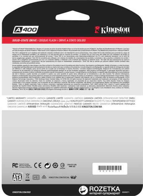 У этого накопителя высокая скорость, исключительная надежность и высокая скорость обмена данными. Работая с данными со скоростью до 10 раз превышающей скорость традиционных жестких дисков, этот SSD обеспечивает значительное ускорение старта системы и загрузку программ, а также повышает общую отзывчивость системы. Благодаря отсутствию подвижных элементов он значительно более устойчив к вибрациям и динамическим нагрузкам, чем традиционные жесткие диски. А еще этот твердотельный накопитель снабжен гарантией, бесплатной технической поддержкой и легендарной надежностью от Kingston.