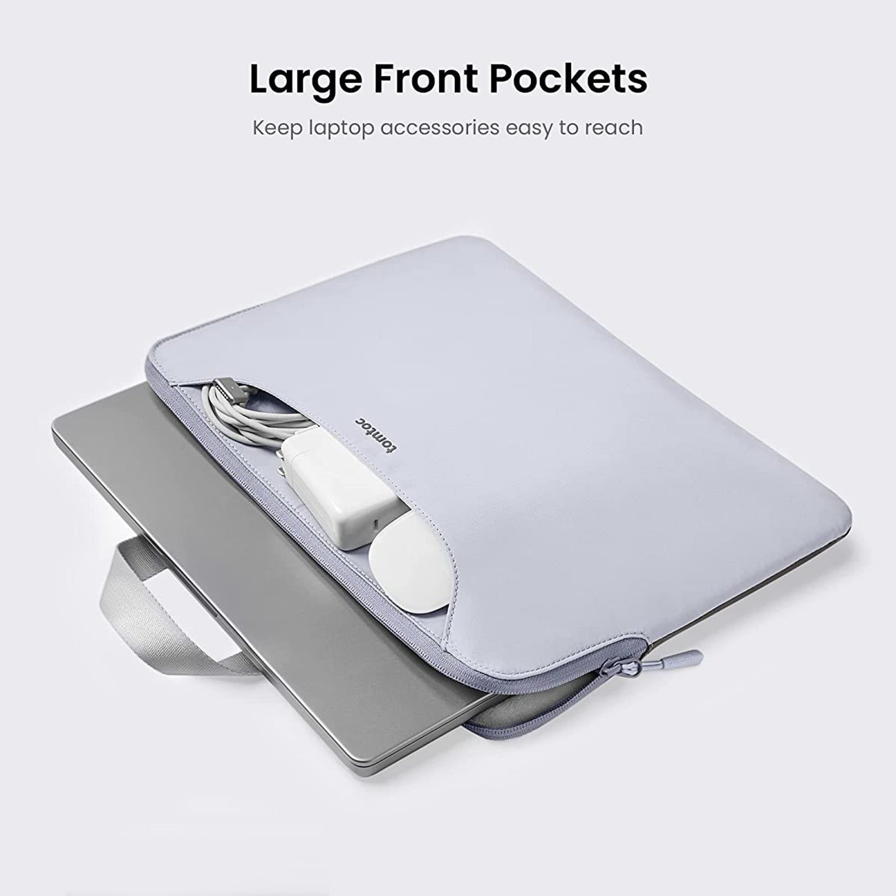 Сумка вмещает до 14-дюймового ноутбука и имеет отдельные карманы по обе стороны, чтобы хранить все ваши вещи (например, зарядное устройство, кабели, блок питания, Kindle, iPad Mini, iPad Air или 11-дюймовый iPad Pro).