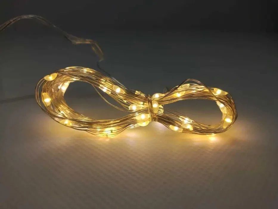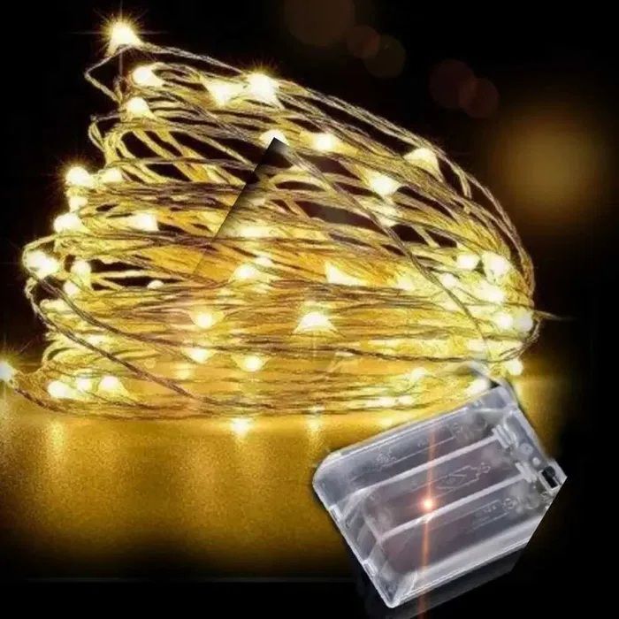 Медная светодиодная гирлянда, теплый белый свет, 10 м, 100 диодов, 1 режим, 3xAA батарейки (пальчик)
