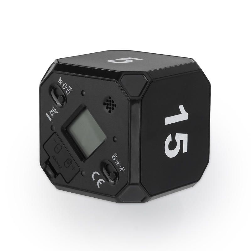 Управление этим кубическим, компактным и стильным таймером с гравитационным сенсором происходит простым переворотом и так как он имеет встроенные интервалы (5, 15, 25 и 45 минут), то для начала отсчета достаточно перевернуть куб на нужную грань, а по окончании времени будет подан сигнал (звук, вибрация или световое оповещение). Когда сторона с переключателем обращена вверх, время будет остановлено.