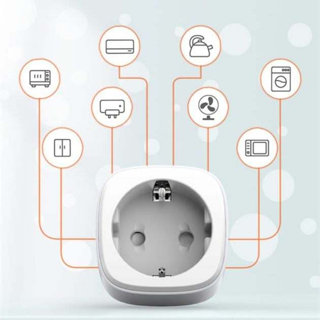 - Позволяет дистанционно включать и выключать бытовые приборы через мобильное приложение. Управление возможно из любой точки мира с помощью смартфона.